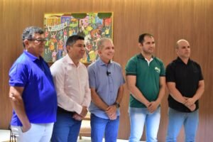 Na manhã desta quarta-feira (13), o prefeito de Patos, Nabor Wanderley, anunciou oficialmente a ampliação do Programa “Novos Olhares” para mototaxistas e taxistas cadastrados na STTrans. O lançamento aconteceu no gabinete do prefeito e contou com a presença do secretário de Saúde, Leônidas Medeiros, do superintendente da STTrans, Elucinaldo Laurindo, do presidente do Sindicato dos Mototaxistas, José Marcos, e do presidente da Cooperativa dos Taxistas de Patos e Região, Geraldo Clementino Leite (Dinho Taxista).