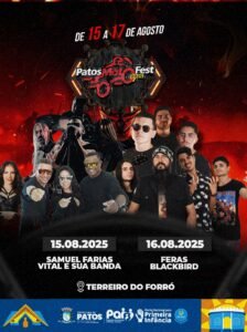 Patos vai se transformar no ponto de encontro dos apaixonados por duas rodas entre os dias 15 e 17 de agosto durante o Patos Moto Fest 2025, um dos maiores eventos motociclísticos do Nordeste. O festival acontece no Terreiro do Forró, com apoio da Prefeitura de Patos, por meio da Secretaria de Cultura, Turismo e Esporte, e do Governo do Estado da Paraíba, via Secretaria de Estado da Cultura.