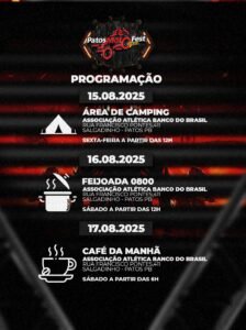 Realizado pela AMO Patos – Associação dos Motociclistas de Patos, o evento contará com uma ampla programação que mistura música, gastronomia e confraternização. De acordo com o presidente da AMO, professor Erivar Azevedo, a expectativa é receber motociclistas de várias regiões do Brasil.