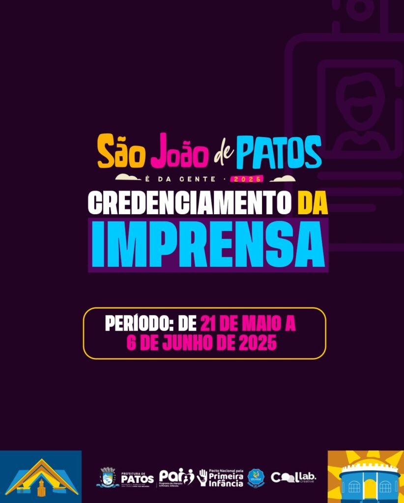 A Prefeitura de Patos, por meio da Secretaria Executiva de Comunicação, e a Collab Criative publicam o edital de credenciamento para cadastro dos profissionais da imprensa que têm interesse em fazer a cobertura jornalística da edição do São João de Patos 2025. O profissional interessado em trabalhar nos espaços do evento deverá realizar seu […]