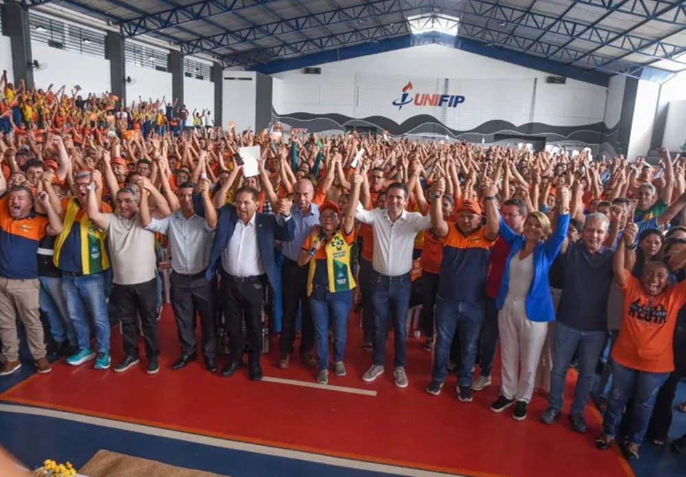 Ao lado do deputado Hugo Motta, pré-candidato a governador, deputado Adriano Galdino recebe homenagem dos agentes de saúde, em Patos