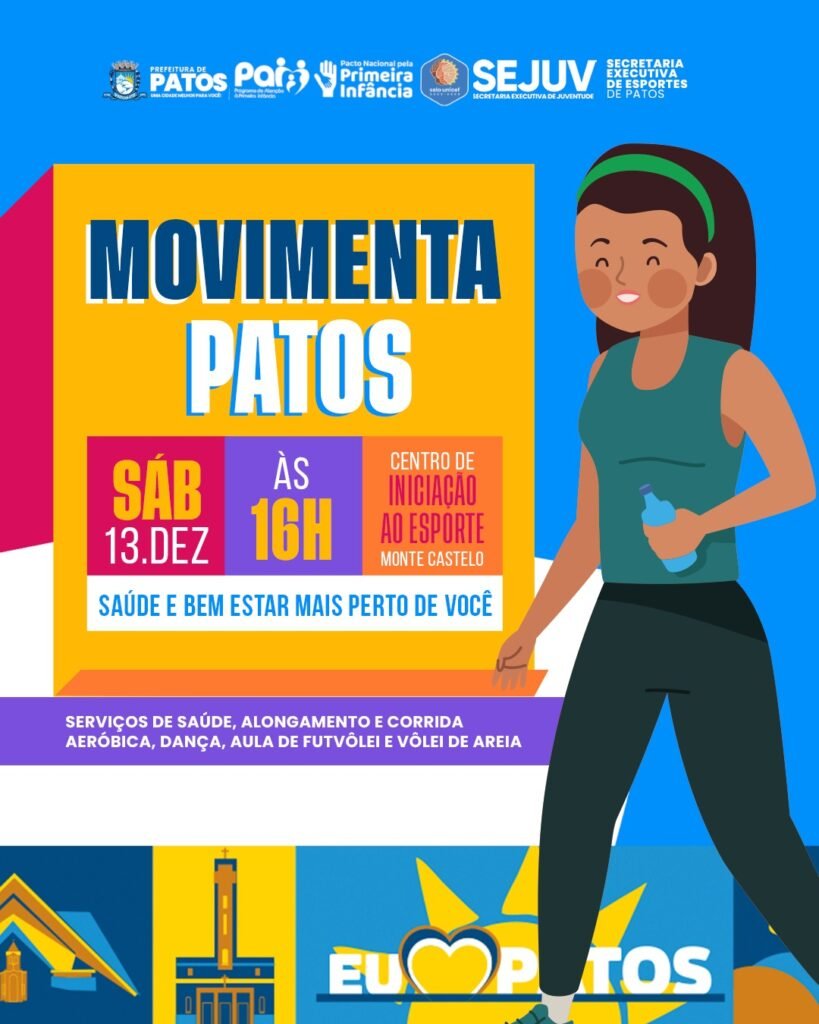 A Prefeitura de Patos, por meio da Secretaria Executiva de Juventude (SEJUV) e da Secretaria Executiva de Esportes, realiza no sábado, 13 de dezembro, mais uma edição do Movimenta Patos, ação que leva saúde, bem-estar e atividades esportivas diretamente para a comunidade. O evento acontecerá às 16h, no Centro de Iniciação ao Esporte (CIE), localizado […]